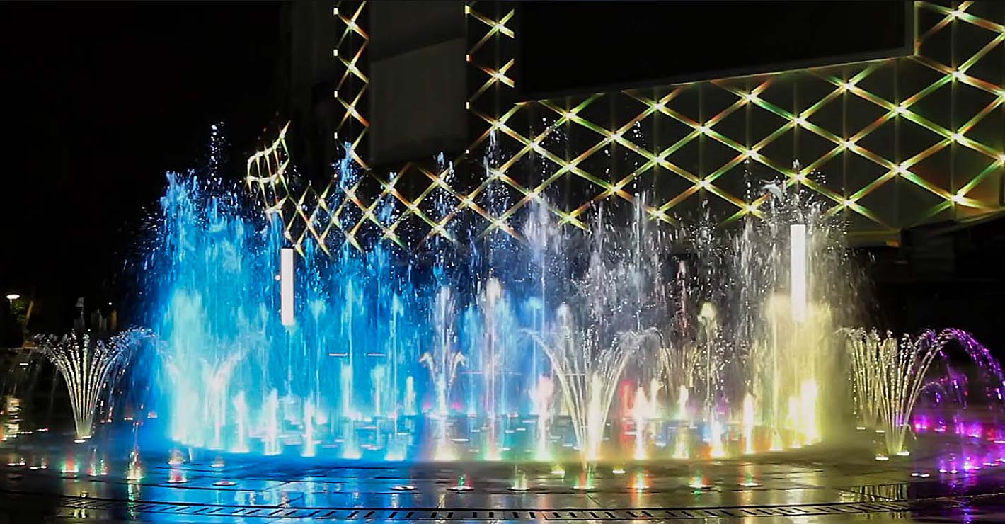 八種變頻控制的噴泉水形,隨著音樂變換,為人們在夜間增添一份美輪美奐的視聽盛宴,為快節(jié)奏的城市生活,帶來一份難得的浪漫閑適。采用隱藏水池、噴頭、燈光的旱式噴泉,設計了造型豐富,錯落有致的噴泉水形,并利用最新的LED專用燈和變頻控制系統(tǒng),使建成后的噴泉水景成為既不占用廣場空間,又集觀賞、休閑、樂趣于一體的景觀亮點。