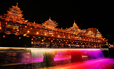 恩施宣恩土家族風(fēng)雨橋瀑布水景